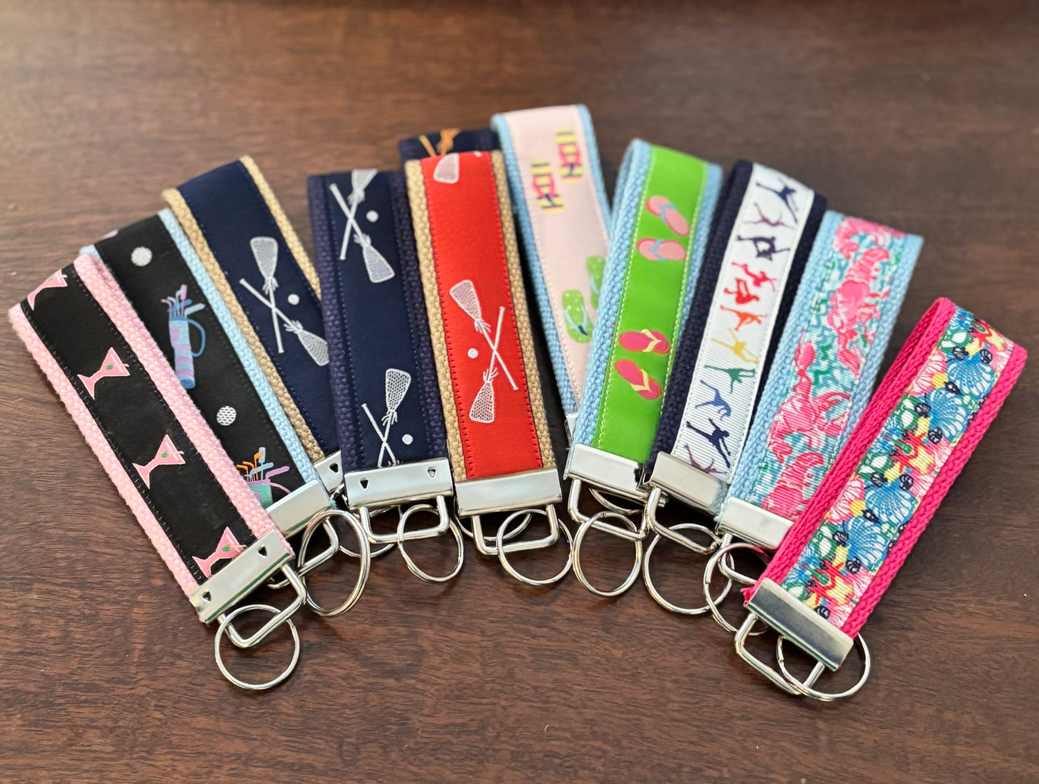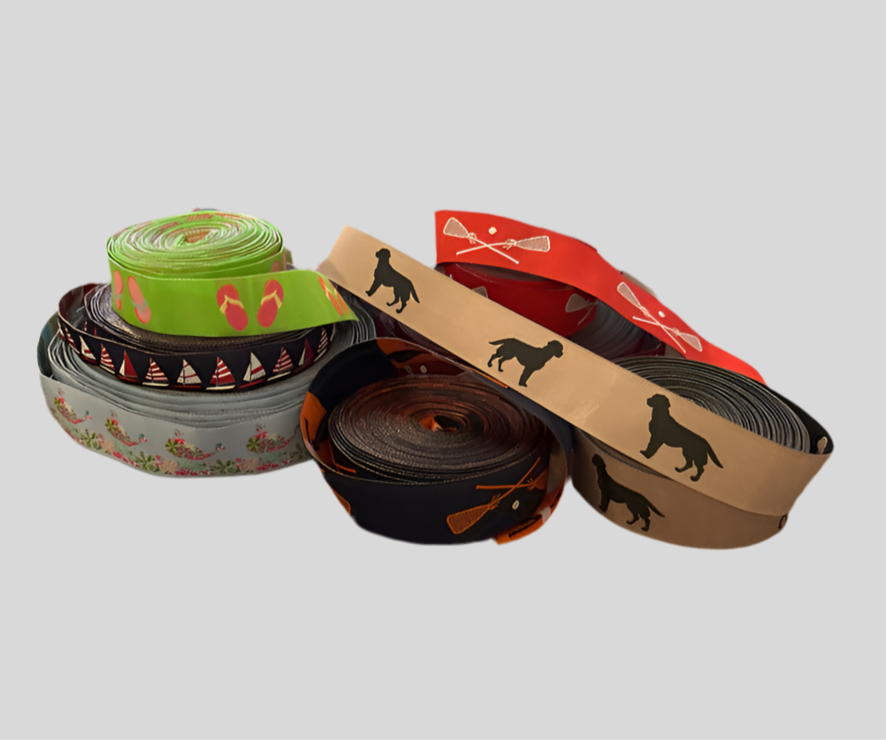 Our most popular products include ribbon belts, dog collars, key fobs and hair accessories. We also sell novelty jacquard ribbons by the yard.